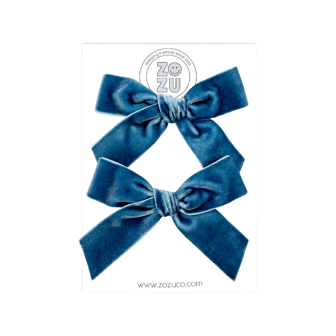 Steel Blue Velvet :: Mini Explorer Ribbon Pigtail Set
