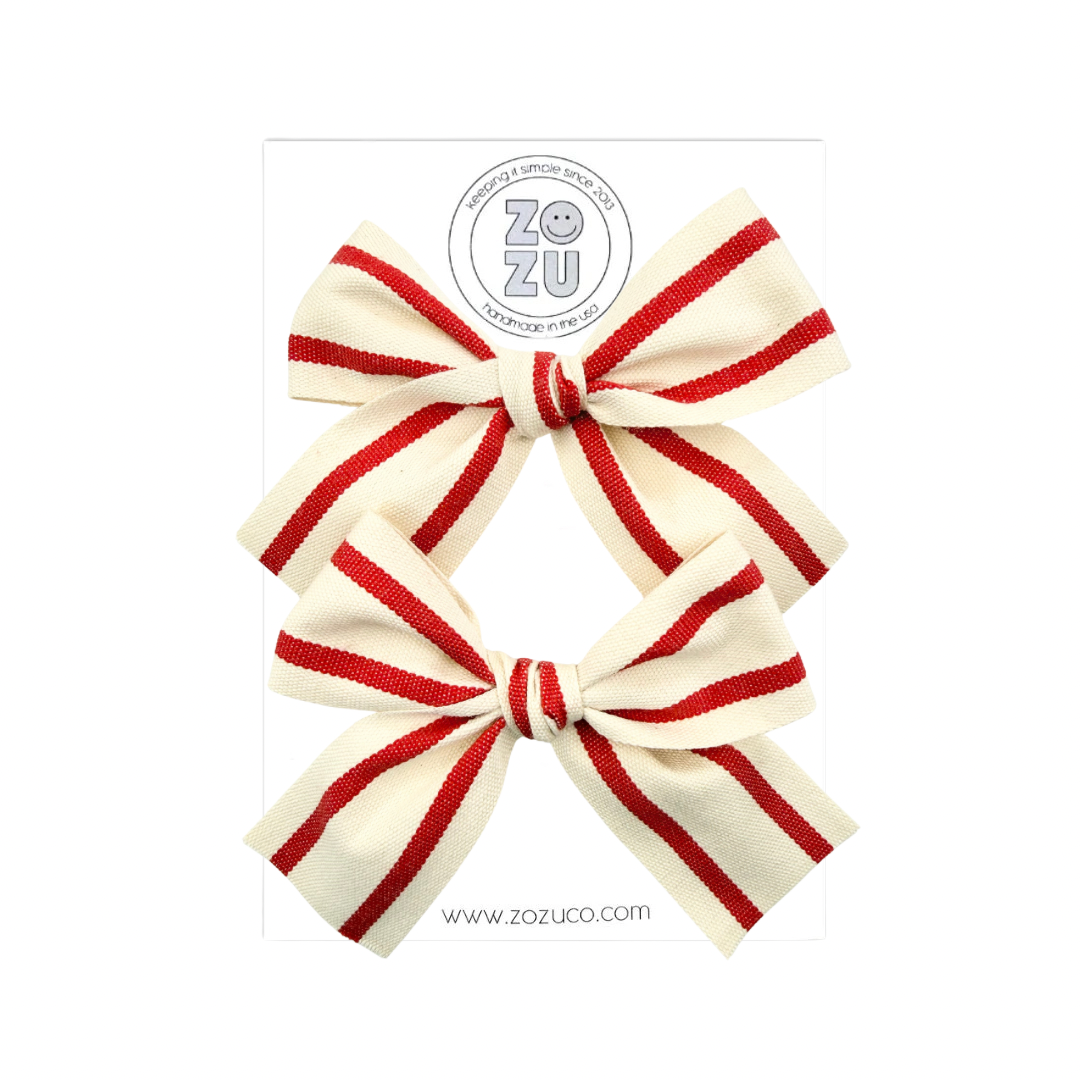 Red Ticking Stripe :: Mini Explorer Ribbon Pigtail Set